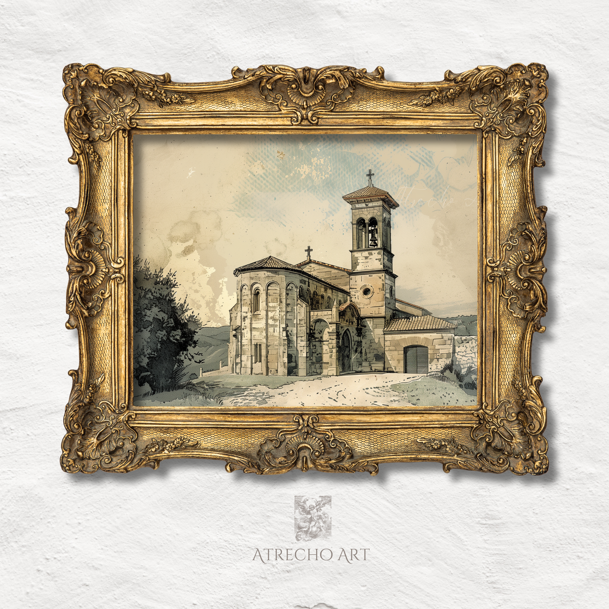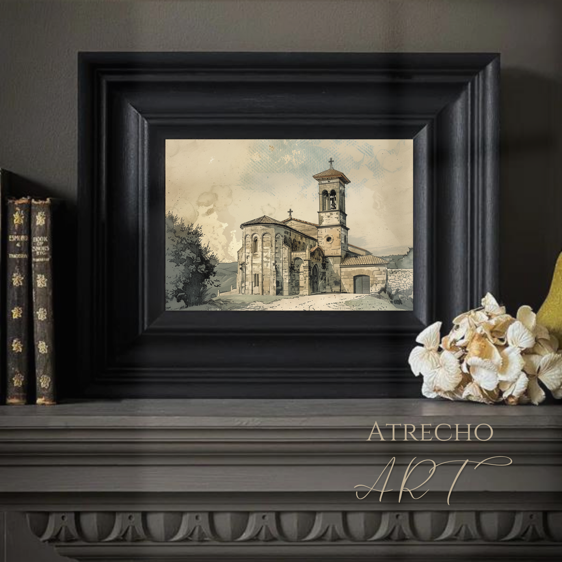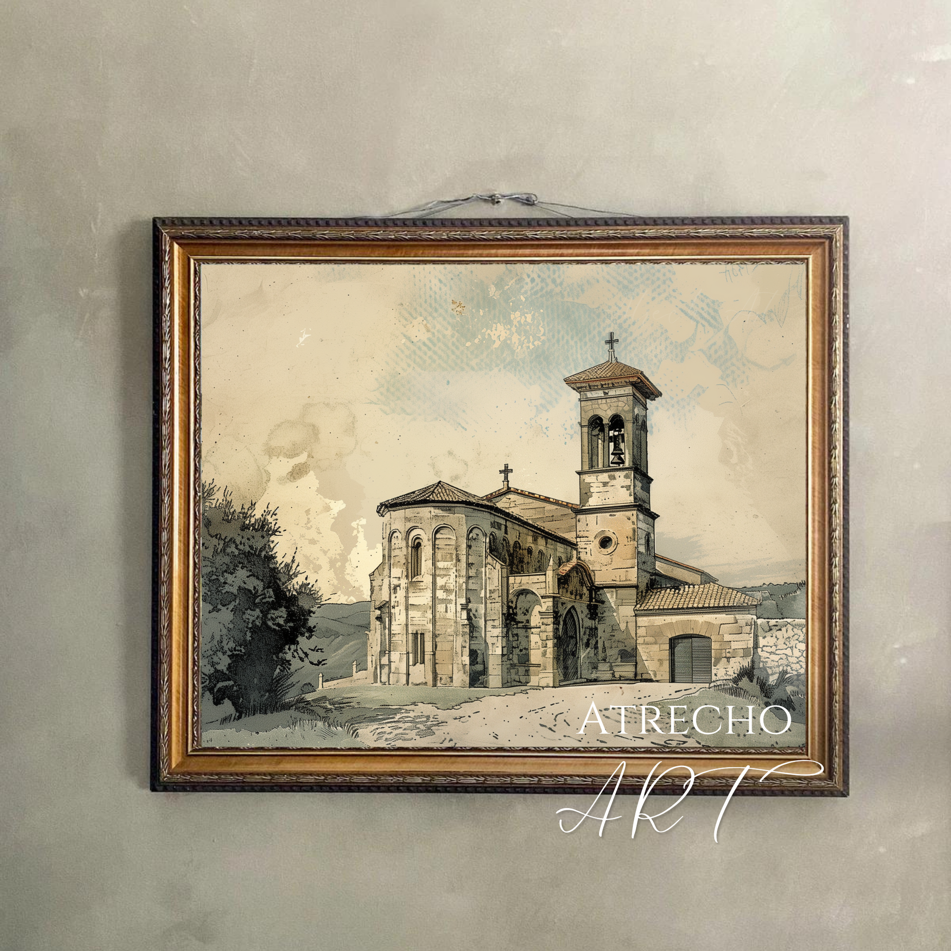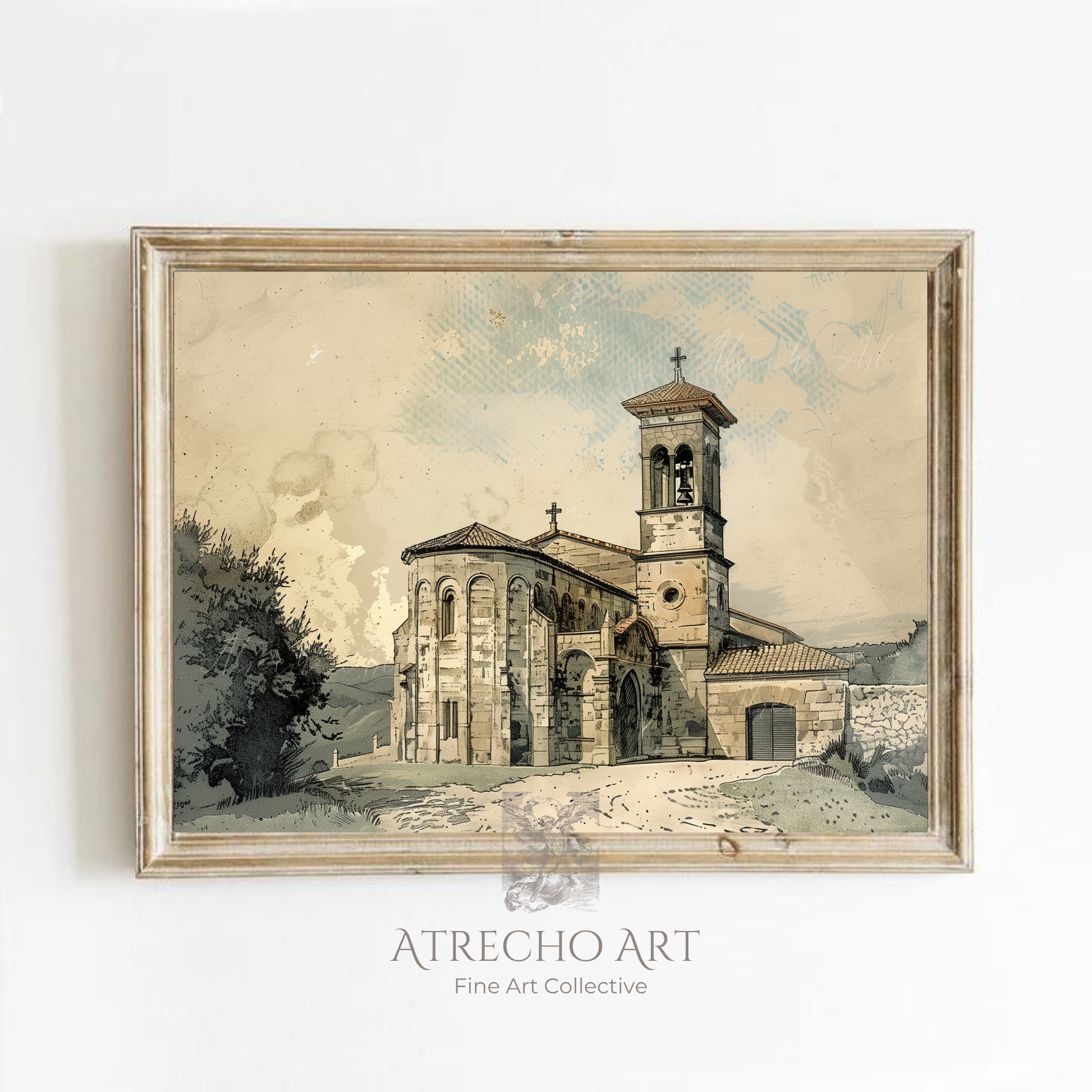 Art mural catholique | Esquisse d'une église | Affiche religieuse des beaux-arts | Art de croquis vintage imprimé