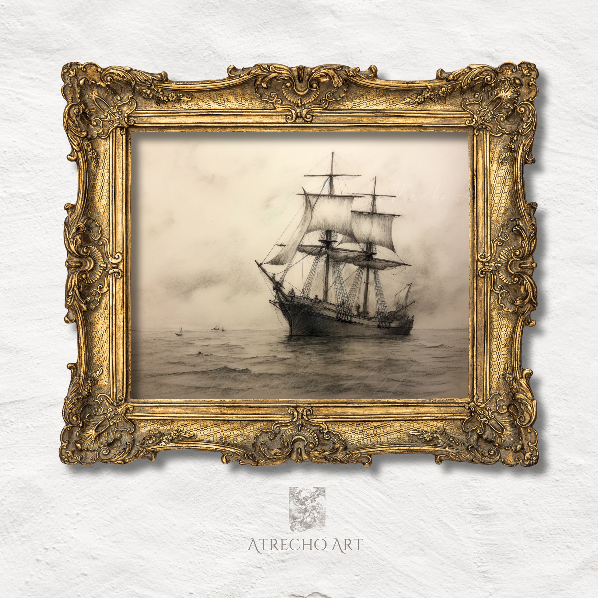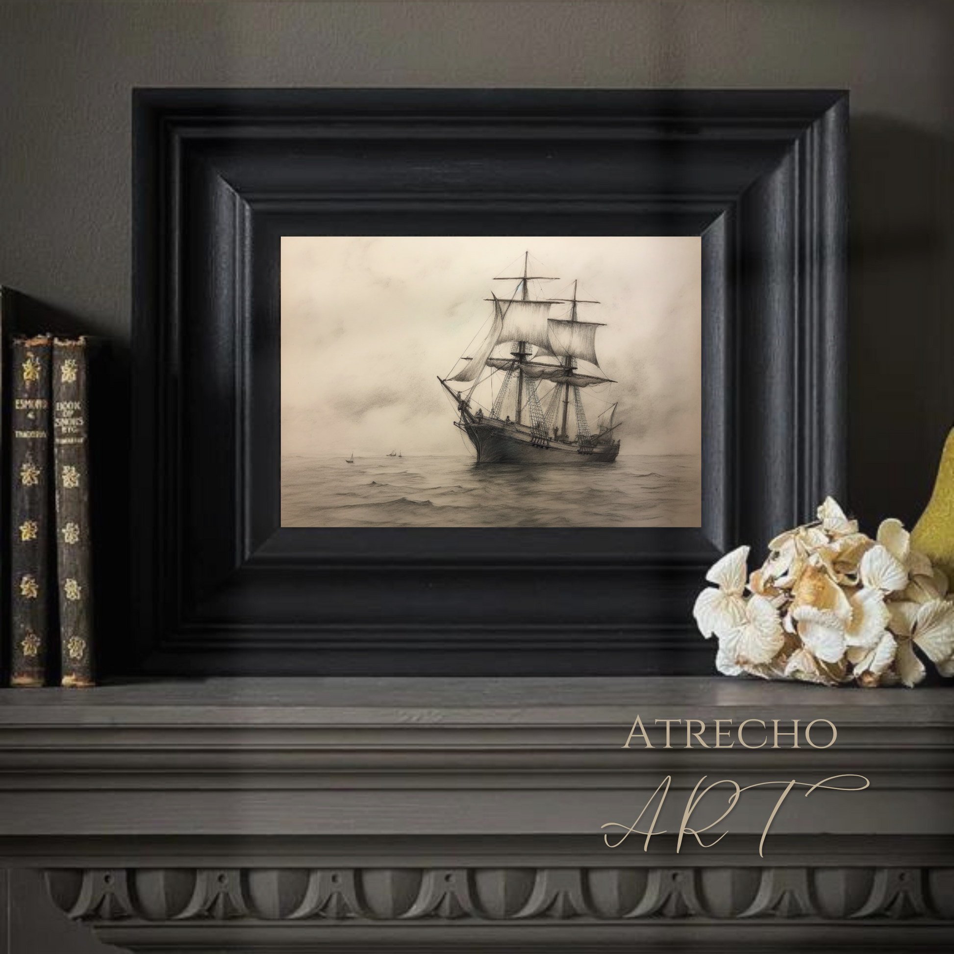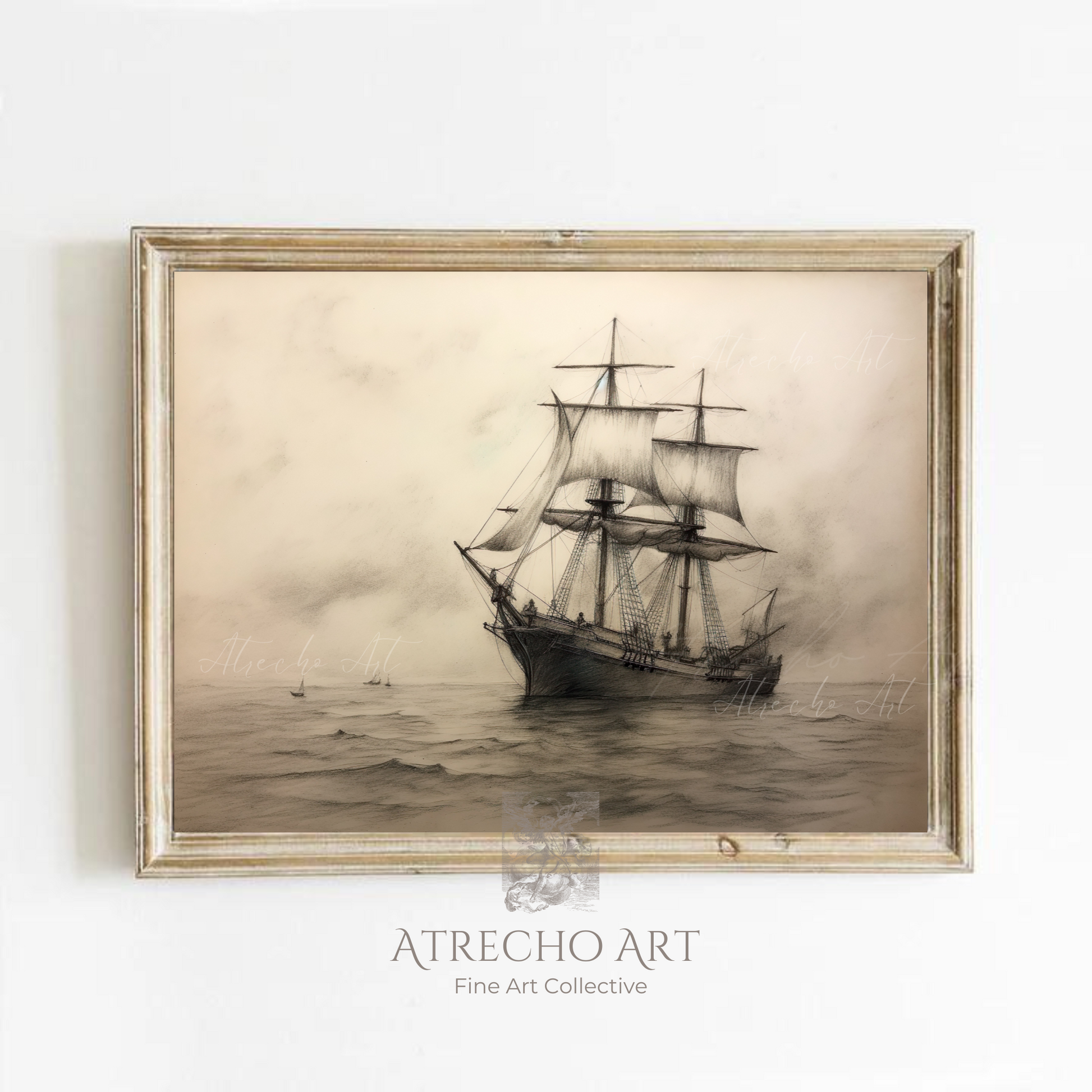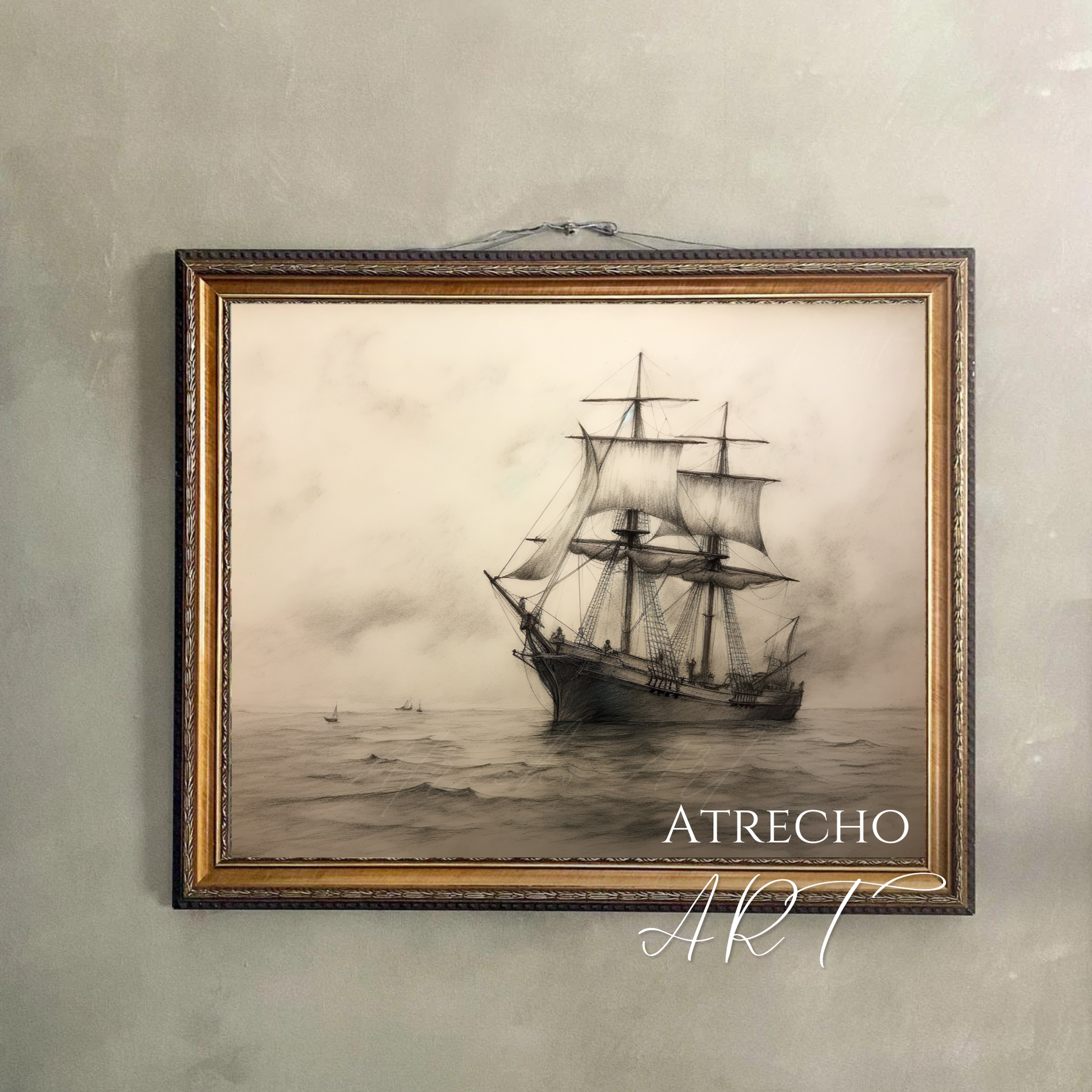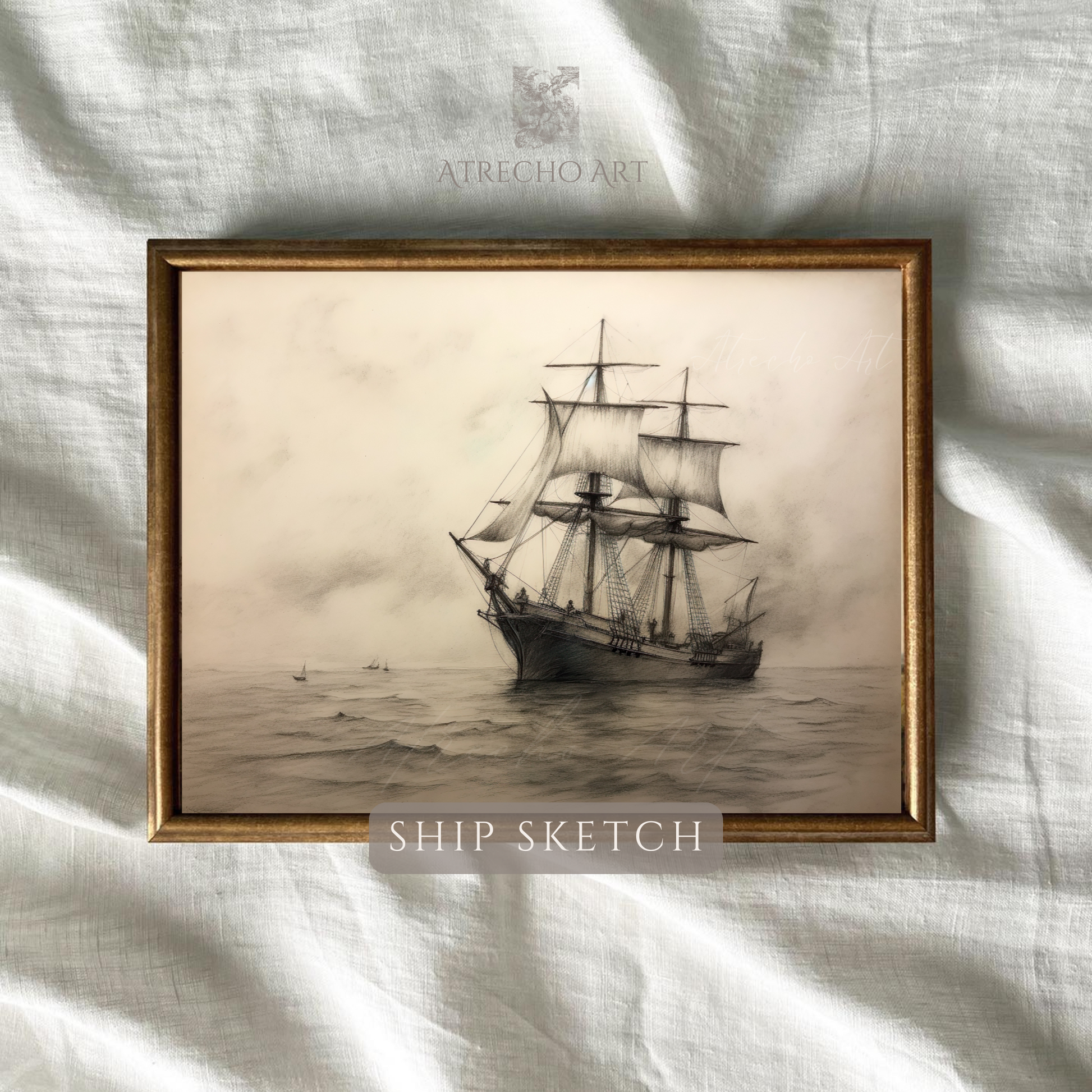 Croquis de navire | Œuvre imprimée | NA24 | Décoration murale nautique | Affiche Light Academia | Œuvre imprimée | Décoration d'intérieur côtière