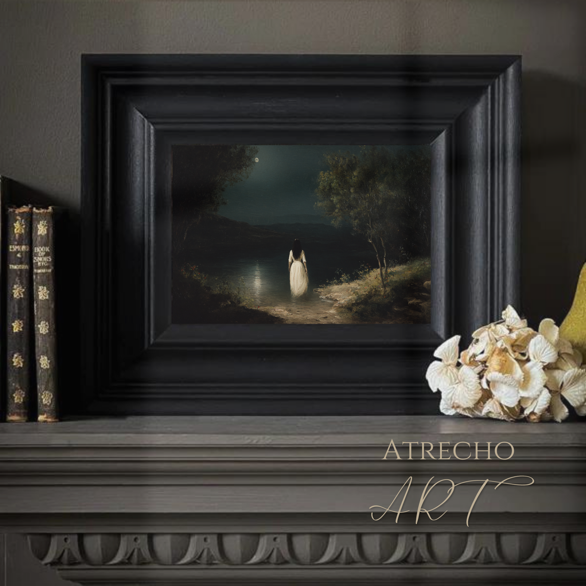 This vintage moody aesthetic creation is available as a printed masterpiece. Our artwork has been digitally enhanced to create the perfect atmosphere for your dark cottage core art or dark academia eclectic aesthetic. Style your artwork as a small print on a shelf or opt for large-scale print for a dramatic effect.